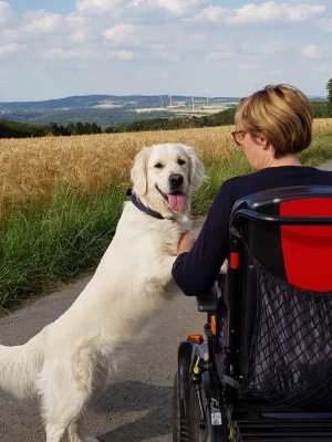 Anke und Mobilitätsassistenzhündin Ellis, ein Team der assistierten Selbstausbildung.