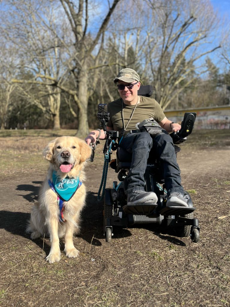 Jasmin und Mobilitätsassistenzhund Bounty, ein Team der assistierten Selbstausbildung.