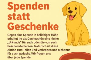 Gegen eine Spende in beliebiger Höhe erhaltet ihr als Dankeschön eine kleine „Urkunde“ für euch oder die von euch beschenkte Person.